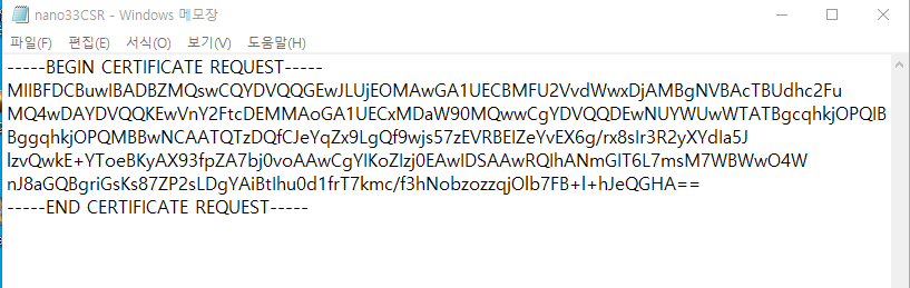 이어서 위에 인증서를 메모장에 저장해줍니다.
