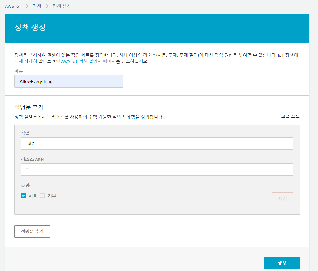 다음과 같이 빈칸을 채워줍니다. 이름은 본인이 원하는 대로 해도 무관합니다. 그다음 생성을 눌러주시면 다음과 같이 생성된 것을 알 수 있습니다.