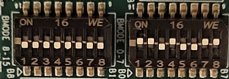 이제 부팅 명령을 실행할 수 있으며 U-Boot는 eMMC에서 Linux 커널을 로드하여 운영 체제를 시작하기 위해서는eMMC 부팅을 위해 아래와 같이 부팅 스위치를 구성해야 eMMC에서 보드를 시작할 수 있다.