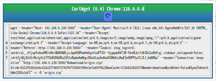 Synology NAS File Station에서 다운로드 링크를 wget/curl로 받는 방법
