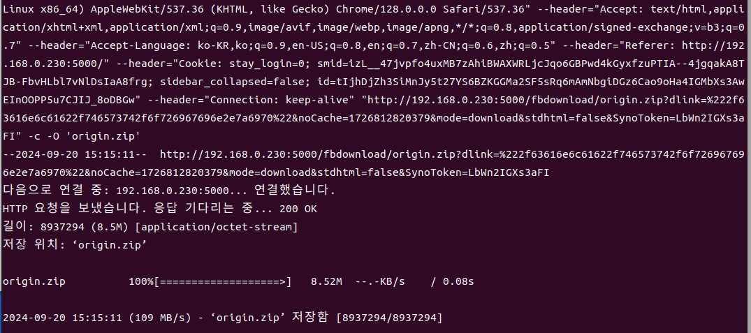해당 커맨드 전체를 복사 & 붙여넣기를 하면 정상적으로 다운로드 되는 것을 확인할 수 있다.