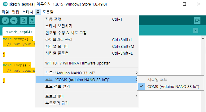 Arduino NANO 33 IOT 보드 설치