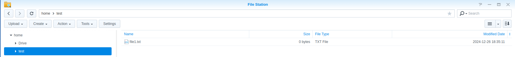 실제 File Station에 로그인해서 해당 폴더를 확인해 보면 file1.txt가 생성된 것을 알 수 있다.