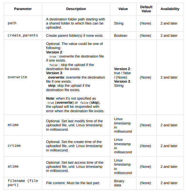 업로드 API의 Parameter 값은 공식 API 가이드 문서에 나와 있다.