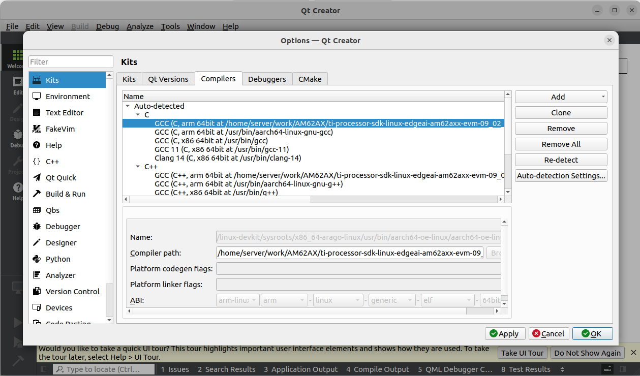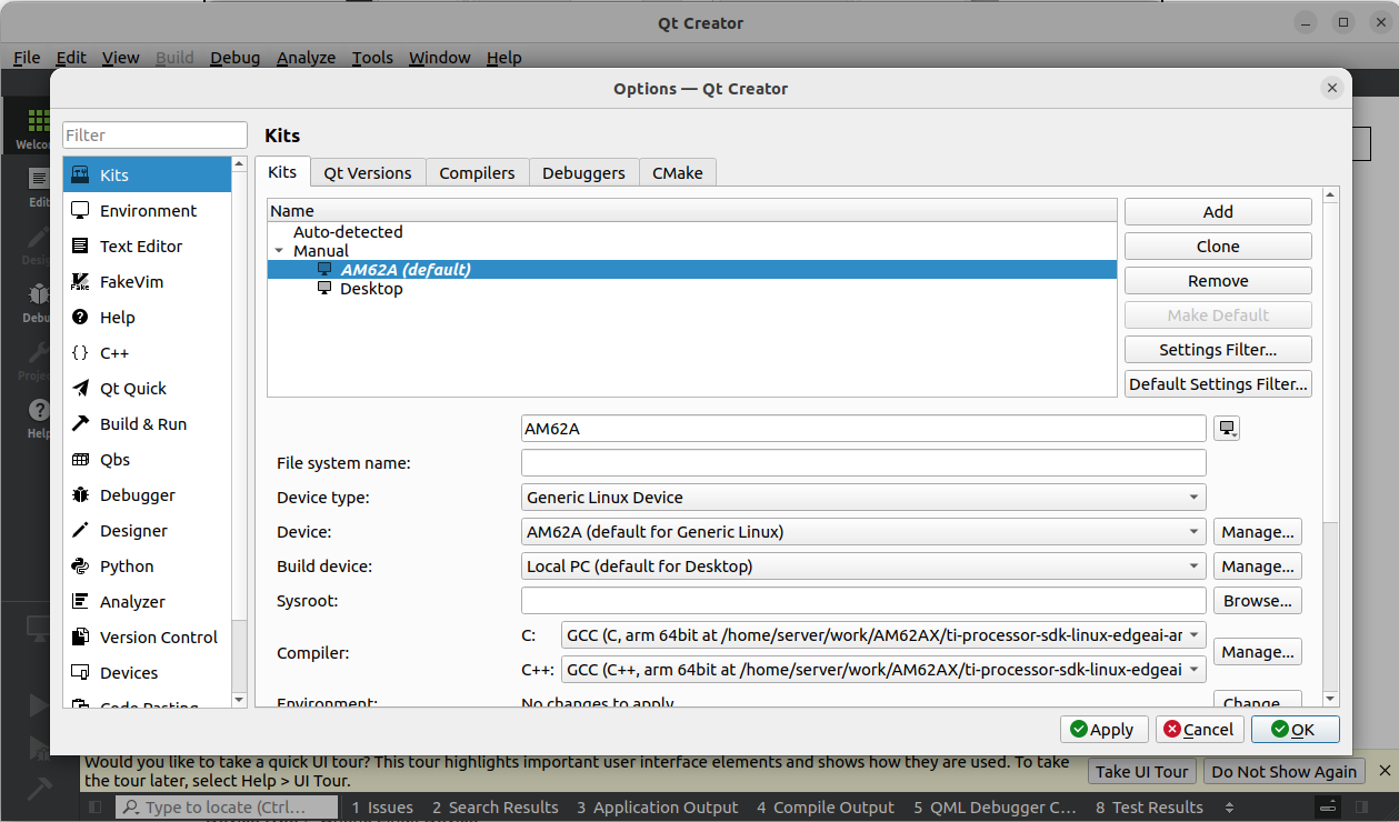 본 글은 AM62A에 크로스 컴파일 된 Qt 라이브러리를 사용하고 Qt-Creator를 구성하기위한 글 입니다.