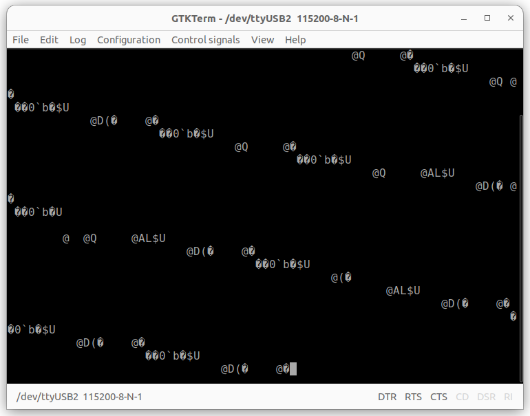 gtkterm은 인쇄할 수 없는 문자도 인쇄하므로 AL! 이 다른 문자와 함께 출력된다.