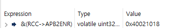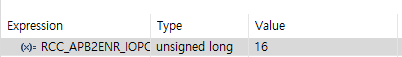 이어서 RCC->APB2ENR 값을 확인해보면 다음과 같이 나온다.