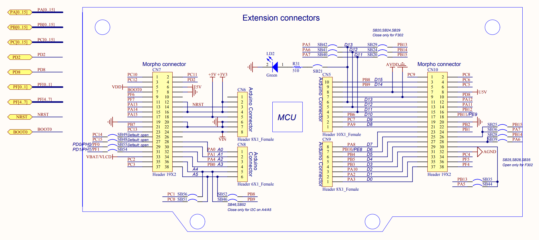 - 모든 STM32 I/O에 대한 전체 액세스를 위한 STMicroelectronics Morpho 확장 핀 헤더