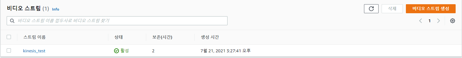 아마존 서비스에 들어가게 되면 스트림이 생성되는것을 볼수 있다. 이를 통해서 명령어를 통해서 스트림 내용을 생성하는 것도 가능하다라는 것을 알 수 있다.
