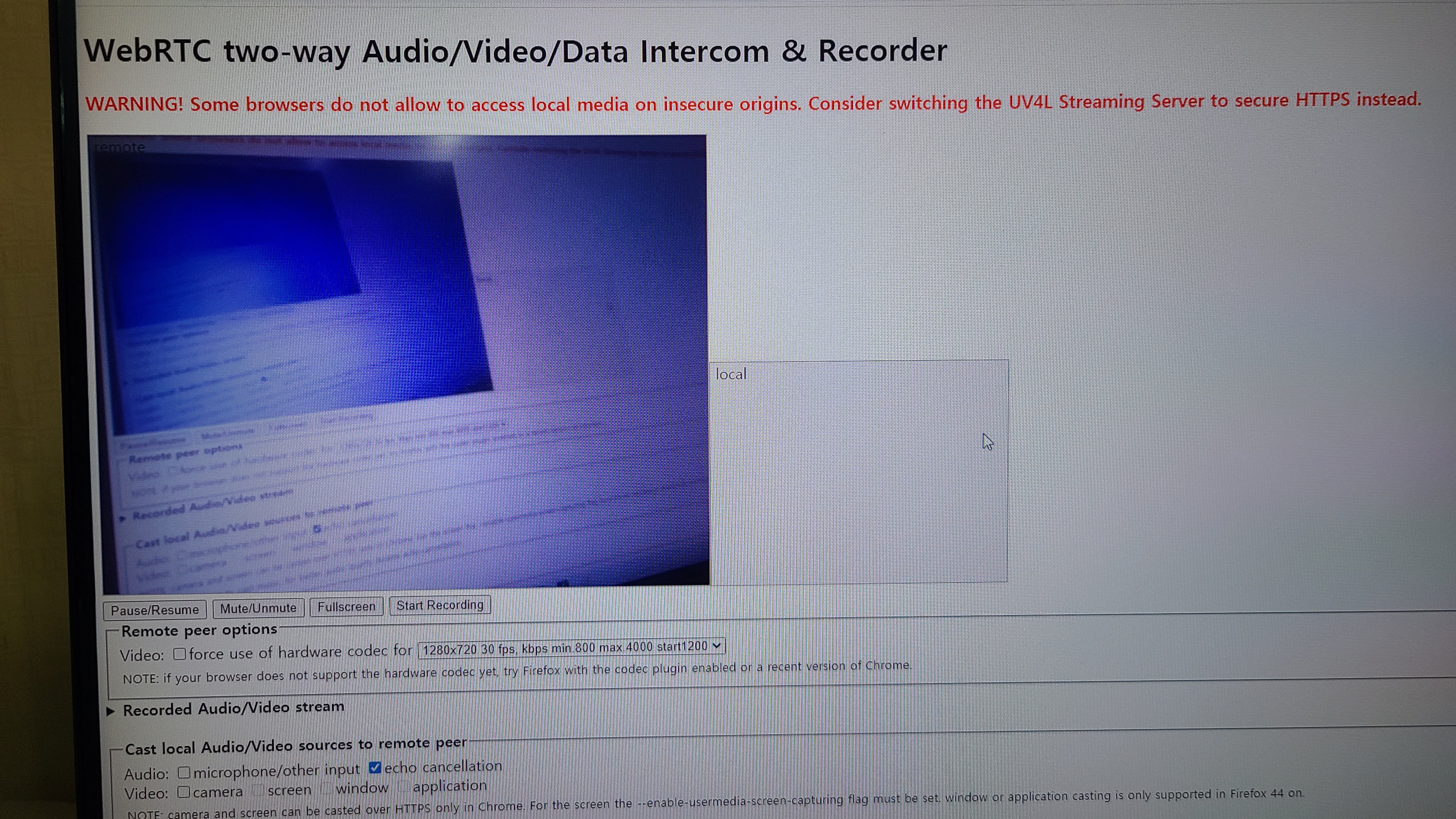 라즈베리파이 ip주소를 입력하여 외부에서 라즈베리파이 서버로 접속 : http://라즈베리파이IP:8080/stream/webrtc