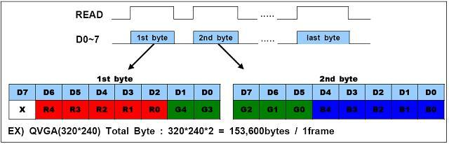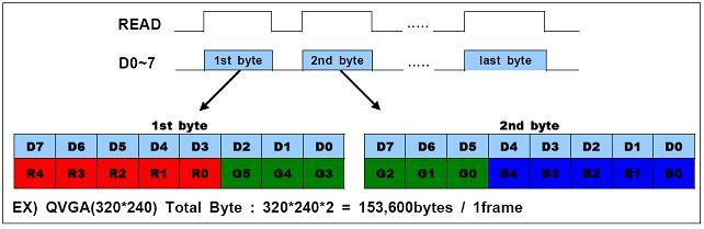 RGB565와 같이 320*240해상도를 갖는 이미지의 경우 320*240*2 로 총 153.600byte 가 된다.