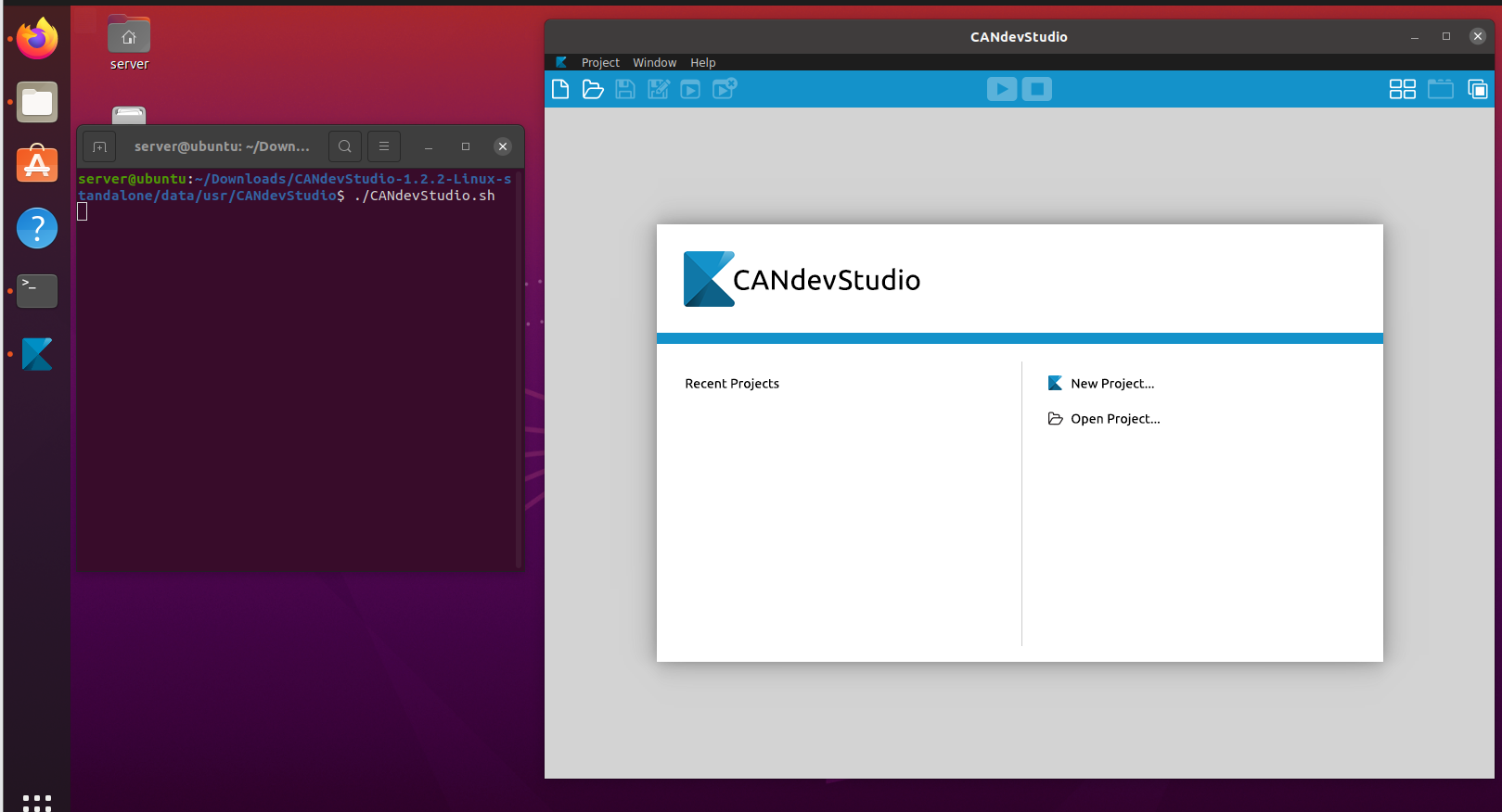 우분투 20.04 기준 위 주소에 파일들 중 standalone 파일을 다운 받은 뒤 압축을 풀어준다. 그 후 밑에 사진과 같은 경로에서 ./CANdevStudio.sh 명령어를 실행시켜 주면 오른쪽과 같이 툴이 나오게 된다.