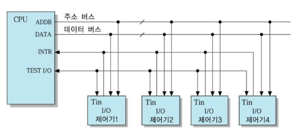 인터럽트 요청이 가능한 장치를 CPU와 단일 회선으로 연결하는 방식