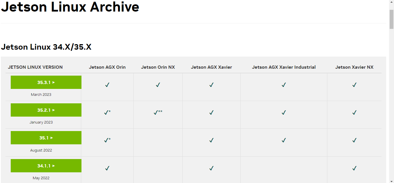 Linux 호스트 PC에서 브라우저를 열고 Jetson Linux Archive로 로 이동해야 합니다.먼저 Jetson Linux 버전이 지원되는지 확인해야 합니다.