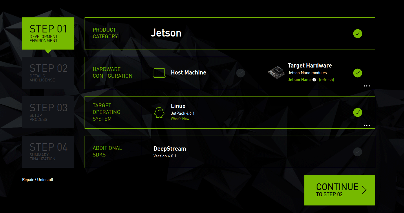 - Product Category 패널에서 Jetson을 선택해야 한다.
