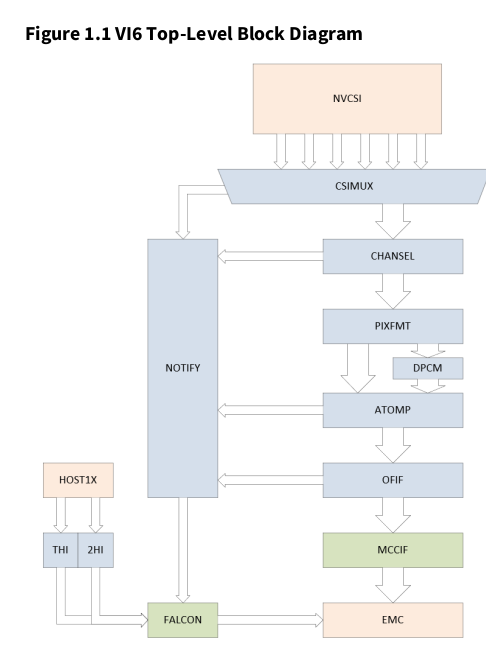 NOTIFY는 VI6의 블록 중 하나로 CSIMUX에서 메모리 쓰기까지의 이벤트를 모니터링하고 Falcon에 알림.