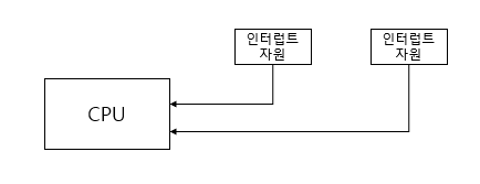 컴퓨터 내 자원들이 인터럽트 요청 회선을 통해 CPU에게로 요청 신호를 전달하게 된다.