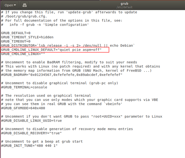 해당 에러 메시지가 뜨는 것을 막기 위해서는 ASPM 기능을 끄는 것으로 방법은 아래와 같다.