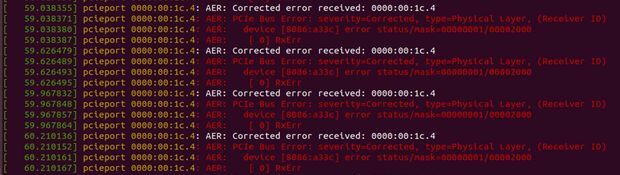 PCIe Bus Error: severity=Corrected, type=Physical Layer, id=00e5(Receiver ID)